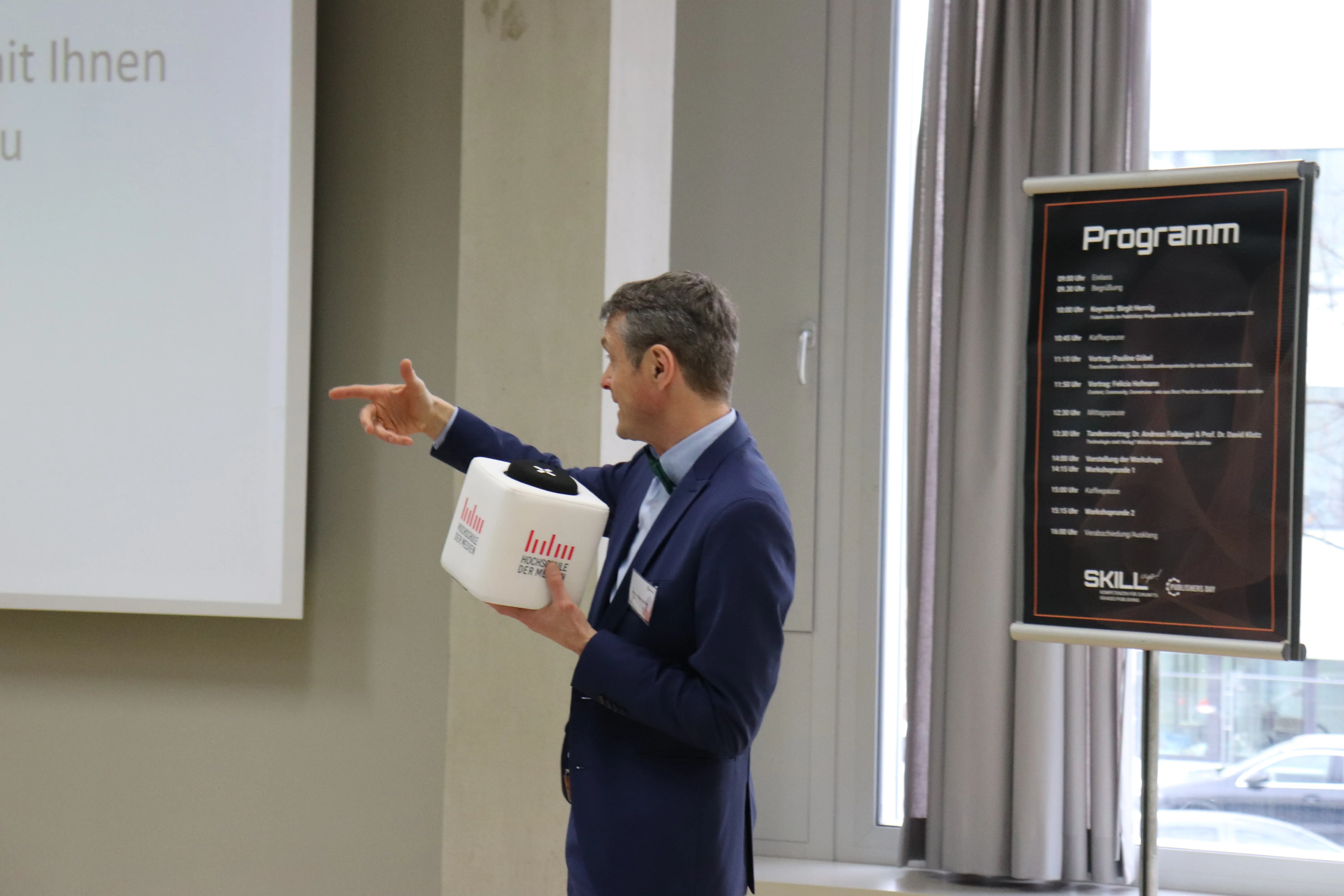 Am 24. Januar 2025 fand der diesjährige Publishers' Day an der Hochschule der Medien statt. Nach dem Motto „Skill Up! Kompetenzen für zukunftsfähiges Publishing“ konnten sich unsere Besucher:innen an spannenden Vorträgen und interaktiven Workshops beteiligen. Die Themen im Fokus waren unter anderem Transformation, KI und Technologie, Audience Developement, sowie People and Culture.